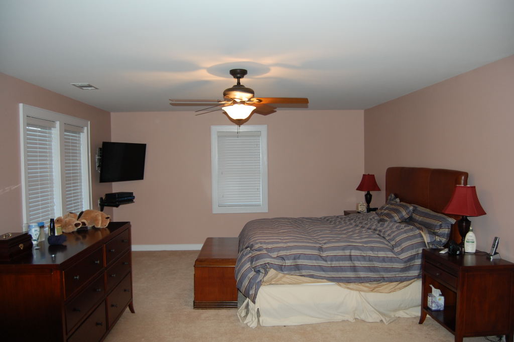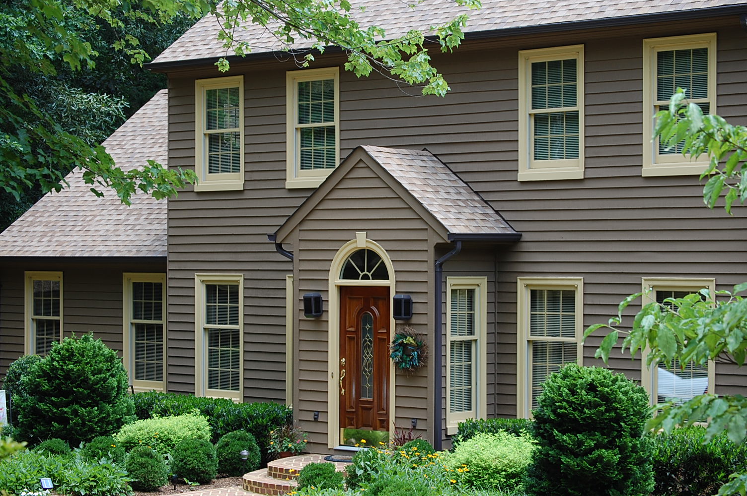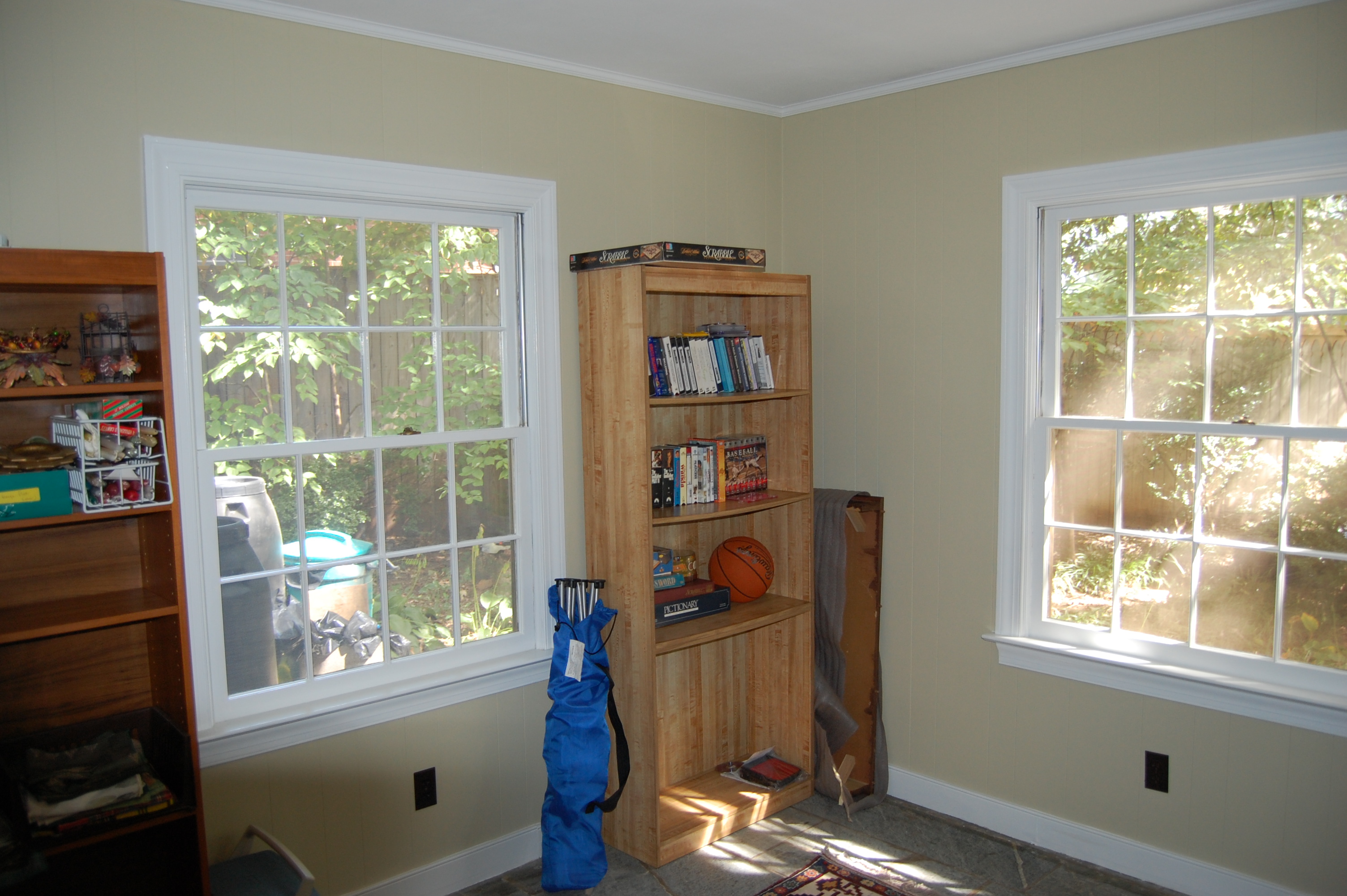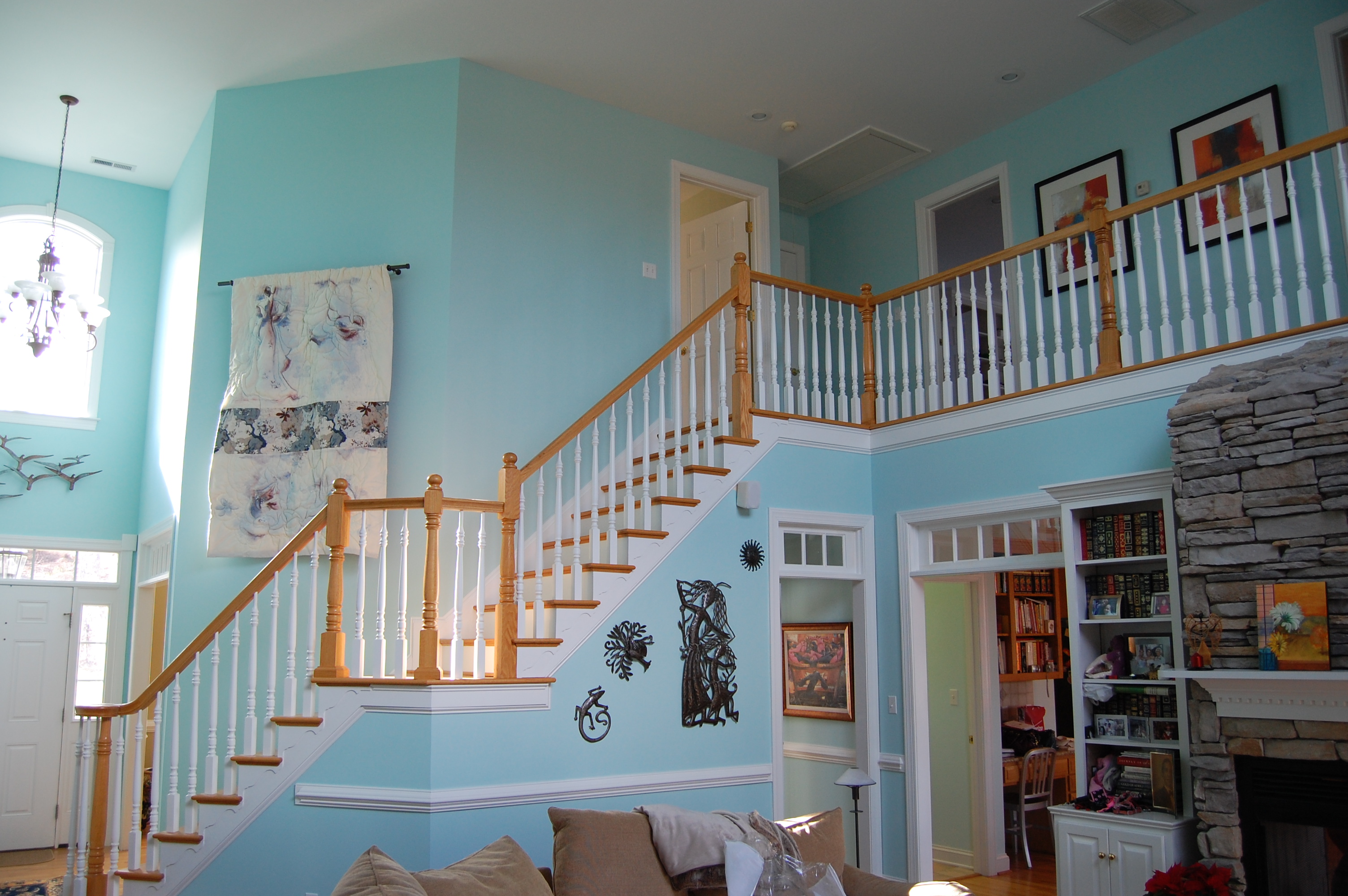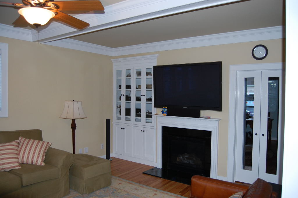 The client originally hired us to repaint and touch up the interior rooms of the home they had just purchased. In the summer we repainted all interior rooms (walls, ceilings, trim) in entirely new colors or with a fresh coat of the existing color. The owners were so pleased with the initial job were called back again in the fall to perform a complete exterior repaint of the home and garage. They also had new cabinets and bookcases made and installed and all finish painting was done by us.