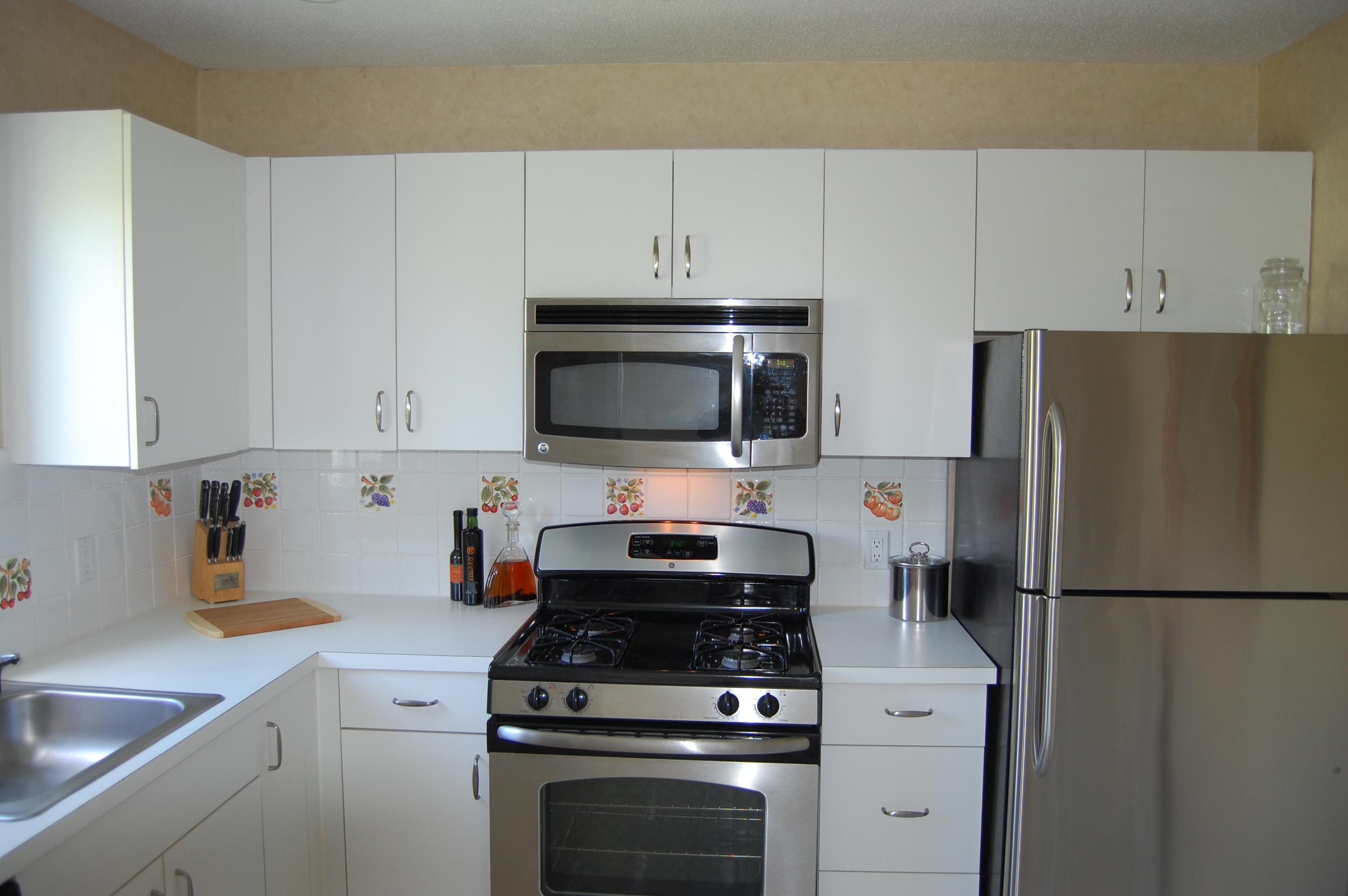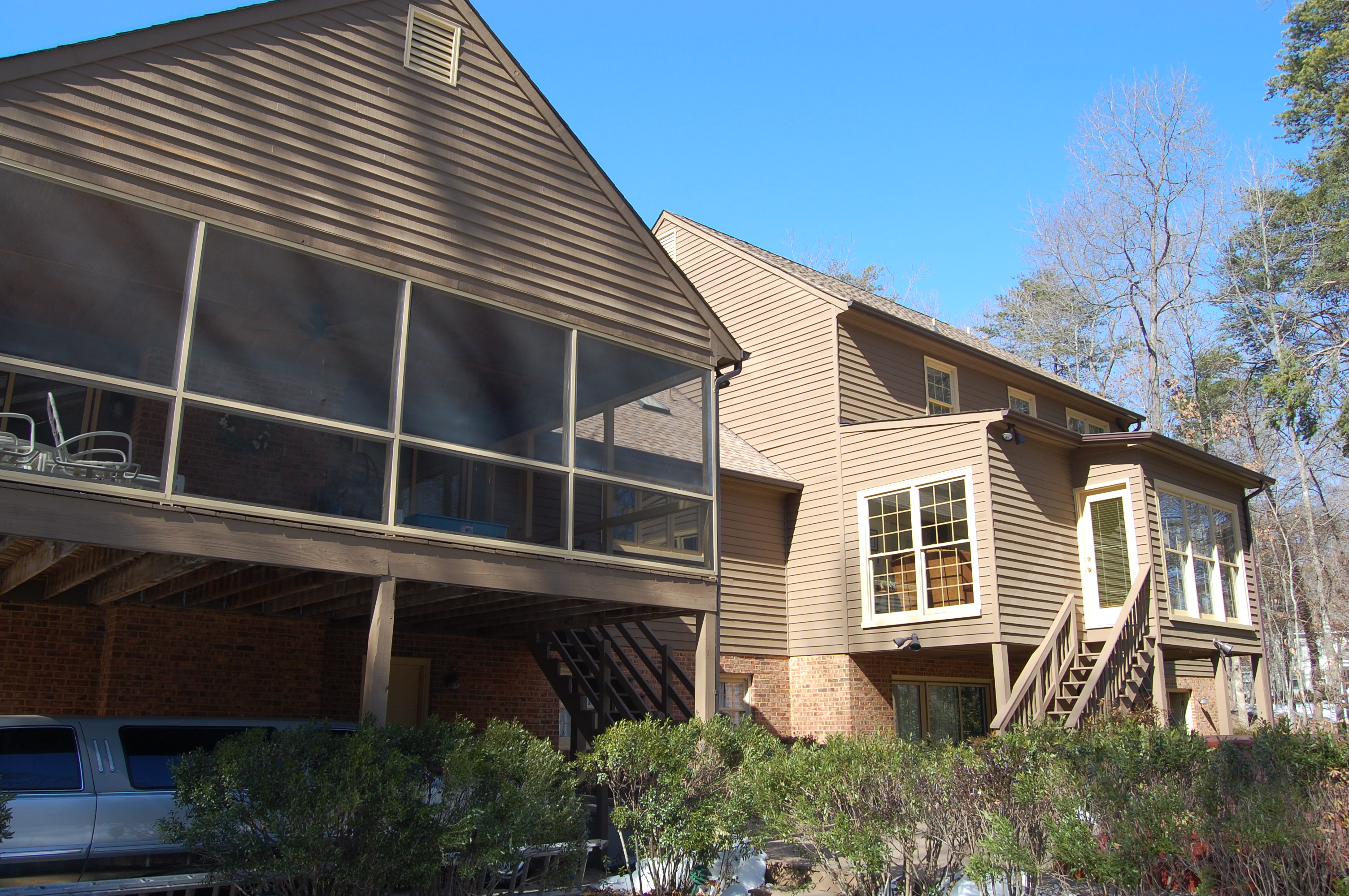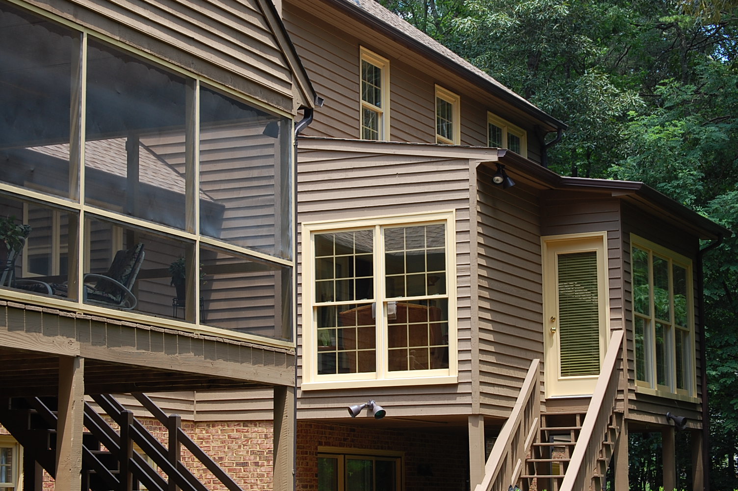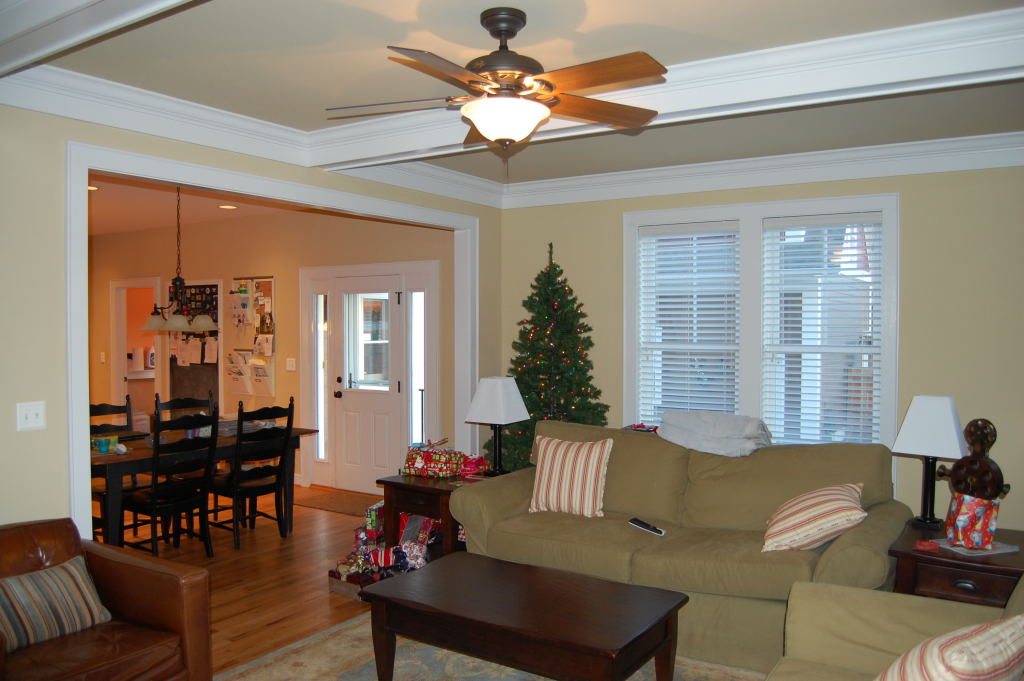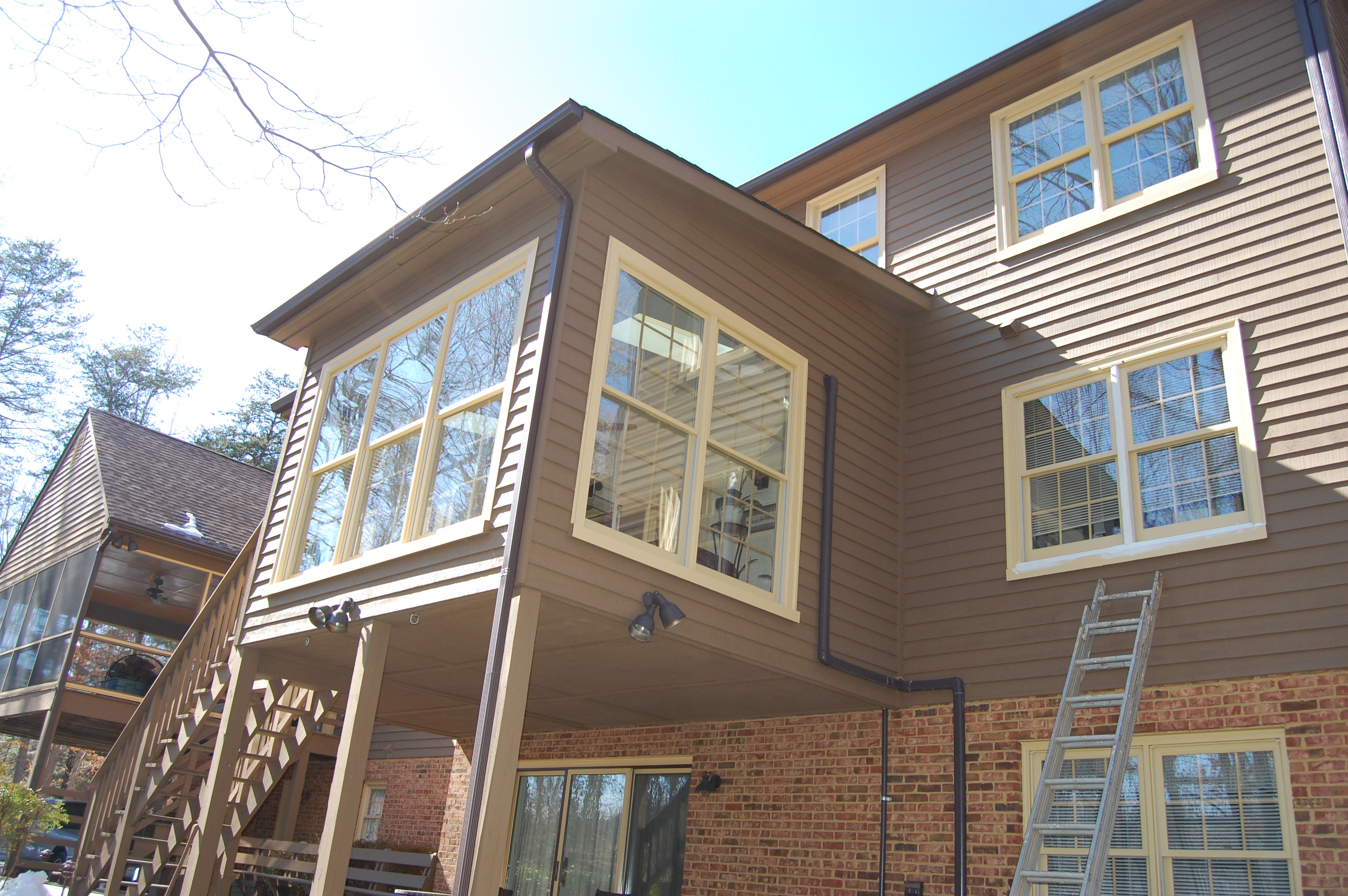 The client originally hired us to repaint and touch up the interior rooms of the home they had just purchased. In the summer we repainted all interior rooms (walls, ceilings, trim) in entirely new colors or with a fresh coat of the existing color. The owners were so pleased with the initial job were called back again in the fall to perform a complete exterior repaint of the home and garage. They also had new cabinets and bookcases made and installed and all finish painting was done by us.